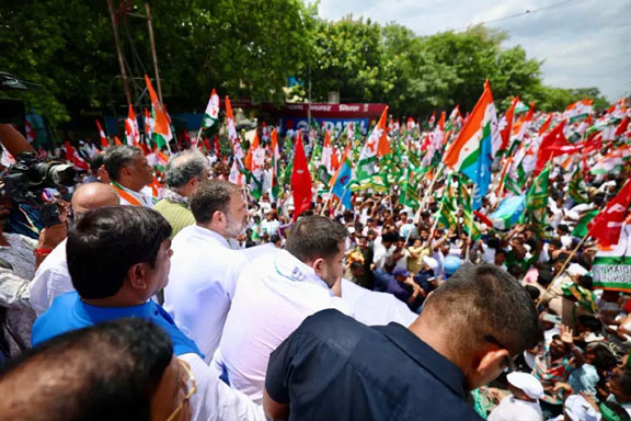 ਪਟਨਾ ਦੇ ਆਇਕਰ ਗੋਲੰਬਰ ਤੋਂ ਸ਼ੁਰੂ ਹੋਏ ਵਿਰੋਧ ਮਾਰਚ ਦੌਰਾਨ ਰਾਹੁਲ ਗਾਂਧੀ ਹੋਰ ਆਗੂਆਂ ਨਾਲ ਇੱਕ ਵਾਹਨ ਤੇ ਸਵਾਰ ਹੋਏ। ਬਿਹਾਰ ਵਿਧਾਨ ਸਭਾ ਚੋਣਾਂ ਤੋਂ ਪਹਿਲਾਂ ਵੋਟਰ ਸੂਚੀ ਦੀ ਵਿਸ਼ੇਸ਼ ਸੁਧਾਈ (ਸ਼ੀz) ਦੇ ਵਿਰੋਧ ਵਿੱਚ ਮਹਾਂਗੱਠਜੋੜ ਵੱਲੋਂ ਦਿੱਤੇ ਗਏ ਰਾਜ ਵਿਆਪੀ ਬੰਦ ਦੇ ਮੱਦੇਨਜ਼ਰ ਅੱਜ ਵਿਰੋਧੀ ਪਾਰਟੀਆਂ ਦੇ ਵਰਕਰ ਸੜਕਾਂ ਤੇ ਉਤਰ ਆਏ, ਜਿਸ ਕਾਰਨ ਰਾਜ ਦੇ ਕਈ ਹਿੱਸਿਆਂ ਵਿੱਚ ਰੇਲ ਅਤੇ ਸੜਕੀ ਆਵਾਜਾਈ ਪ੍ਰਭਾਵਿਤ ਹੋਈ।