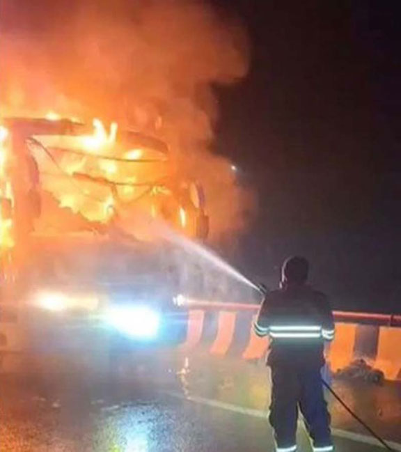 ਲਖਨਊ, 22 ਜਨਵਰੀ (ਸ.ਬ.) ਉੱਤਰ ਪ੍ਰਦੇਸ਼ ਵਿੱਚ ਅੱਜ ਸਵੇਰੇ ਯਮੁਨਾ ਐਕਸਪ੍ਰੈਸਵੇਅ ਤੇ ਸਵਾਰੀਆਂ ਨਾਲ ਭਰੀ ਇਕ ਡਬਲ-ਡੈਕਰ ਬੱਸ ਨੂੰ ਅਚਾਨਕ ਅੱਗ ਲੱਗ ਗਈ। ਇਹ ਘਟਨਾ ਸਵੇਰੇ 5:30 ਵਜੇ ਦੇ ਕਰੀਬ ਰਾਇਆ ਥਾਣਾ ਖੇਤਰ ਵਿੱਚ ਆਗਰਾ-ਨੋਇਡਾ ਰੂਟ ਤੇ ਮਾਈਲਸਟੋਨ 110 ਦੇ ਨੇੜੇ ਵਾਪਰੀ, ਹਾਲਾਂਕਿ ਗਨੀਮਤ ਰਹੀ ਕਿ ਸਾਰੇ ਯਾਤਰੀਆਂ ਨੂੰ ਸੁਰੱਖਿਅਤ ਬਾਹਰ ਕੱਢ ਲਿਆ ਗਿਆ।