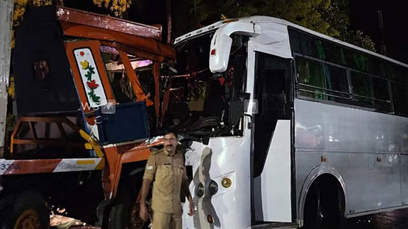 ਕੋਝੀਕੋਡ, 11 ਅਪ੍ਰੈਲ (ਸ.ਬ.) ਕੇਰਲ ਦੇ ਕੋਝੀਕੋਡ ਜ਼ਿਲ੍ਹੇ ਦੇ ਕੋਇਲੈਂਡੀ ਵਿੱਚ ਬੀਤੀ ਦੇਰ ਰਾਤ ਇੱਕ ਪੁਲੀਸ ਬੱਸ ਦੇ ਕੰਟੇਨਰ ਲਾਰੀ ਨਾਲ ਟਕਰਾ ਜਾਣ ਕਾਰਨ ਹਾਦਸਾ ਵਾਪਰ...