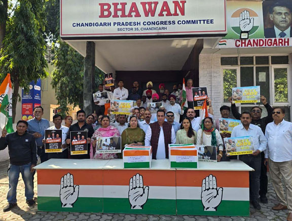 ਕਾਂਗਰਸ ਵਲੋਂ ਦੇਸ਼ ਭਰ ਵਿੱਚ 5 ਕਰੋੜ ਦਸਤਖ਼ਤ ਇਕੱਠੇ ਕਰਕੇ ਰਾਸ਼ਟਰਪਤੀ ਨੂੰ ਭੇਜਣ ਲਈ ਚਲਾਈ ਜਾ ਰਹੀ ਹੈ ਮੁਹਿੰਮ ਚੰਡੀਗੜ੍ਹ, 8 ਨਵੰਬਰ (ਸ.ਬ.) ਚੰਡੀਗੜ੍ਹ ਪ੍ਰਦੇਸ਼...