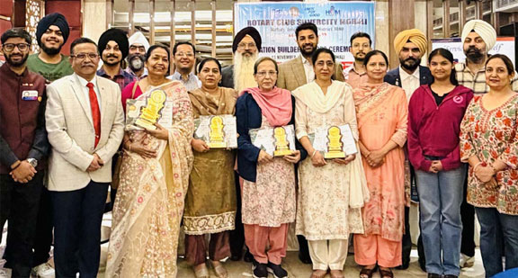 ਐਸ ਏ ਐਸ ਨਗਰ, 21 ਨਵੰਬਰ (ਸ.ਬ.) ਰੋਟਰੀ ਕਲੱਬ ਸਿਲਵਰਸਿਟੀ ਮੁਹਾਲੀ ਵੱਲੋਂ ਅਧਿਆਪਕਾਂ ਨੂੰ ਇੱਕ ਸਮਾਗਮ ਦੌਰਾਨ ‘ਨੇਸ਼ਨ ਬਿਲਡਰ ਐਵਾਰਡ’ ਨਾਲ ਸਨਮਾਨਿਤ ਕੀਤਾ ਗਿਆ। ਸਮਾਗਮ ਦੌਰਾਨ...